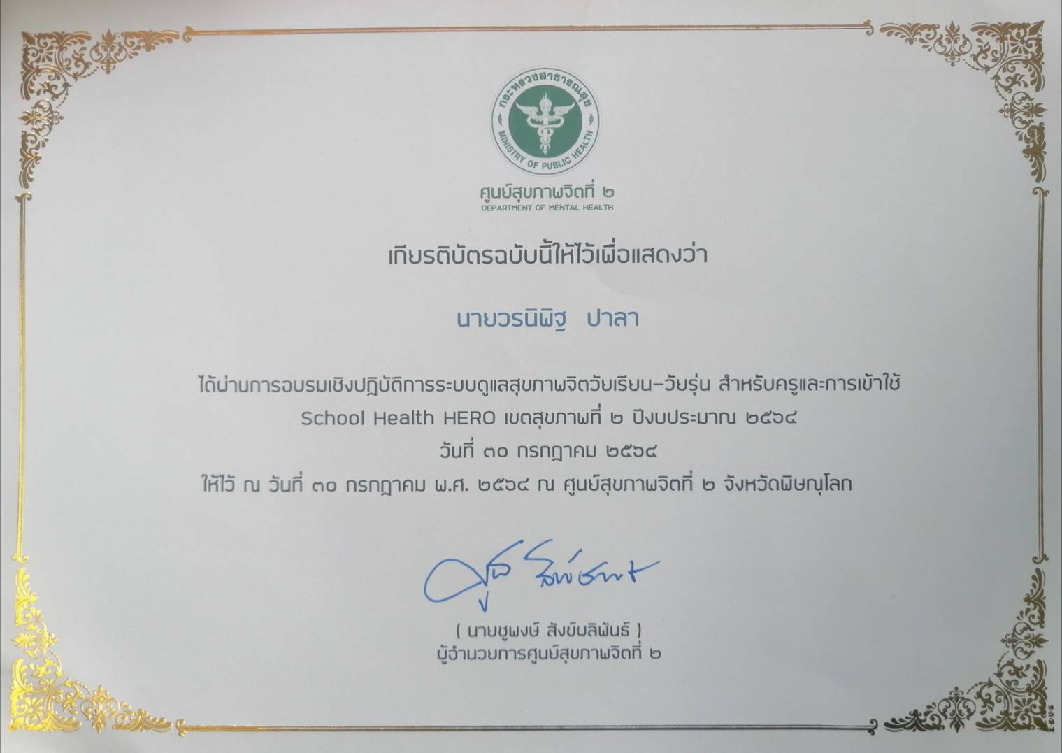 การอบรมเชิงปฎิบัติการระบบดูแลสุขภาพจิตวัยเรียน-วัยรุ่น สำหรับครู และการเข้าใช้ School Health HERO